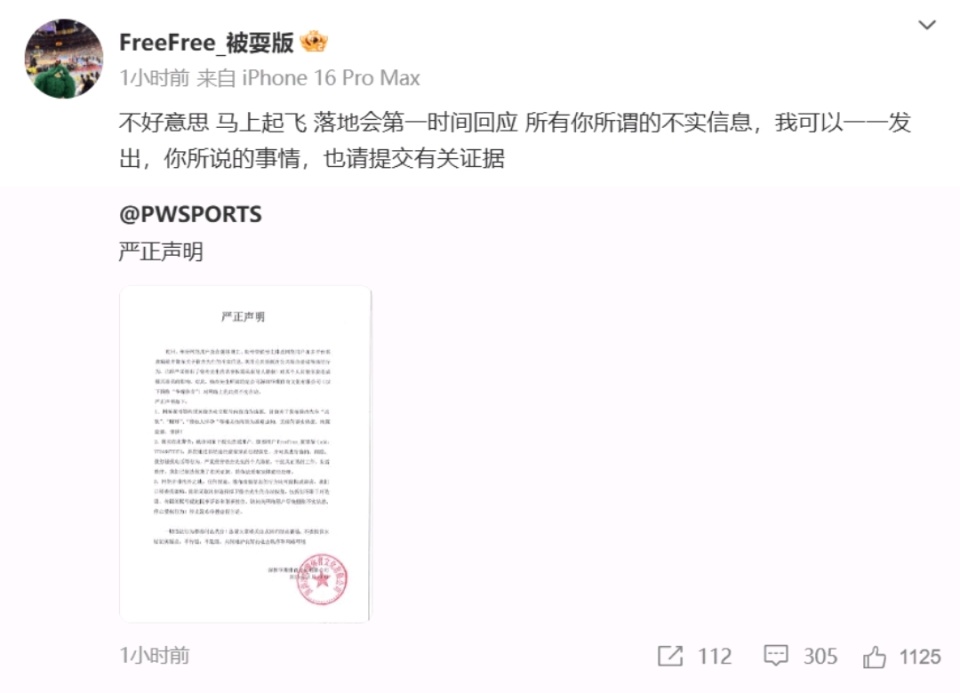 今天,徐杰的经纪公司“深圳华璨体育”一点没怂,直接发声明怼回去,重点就三条: